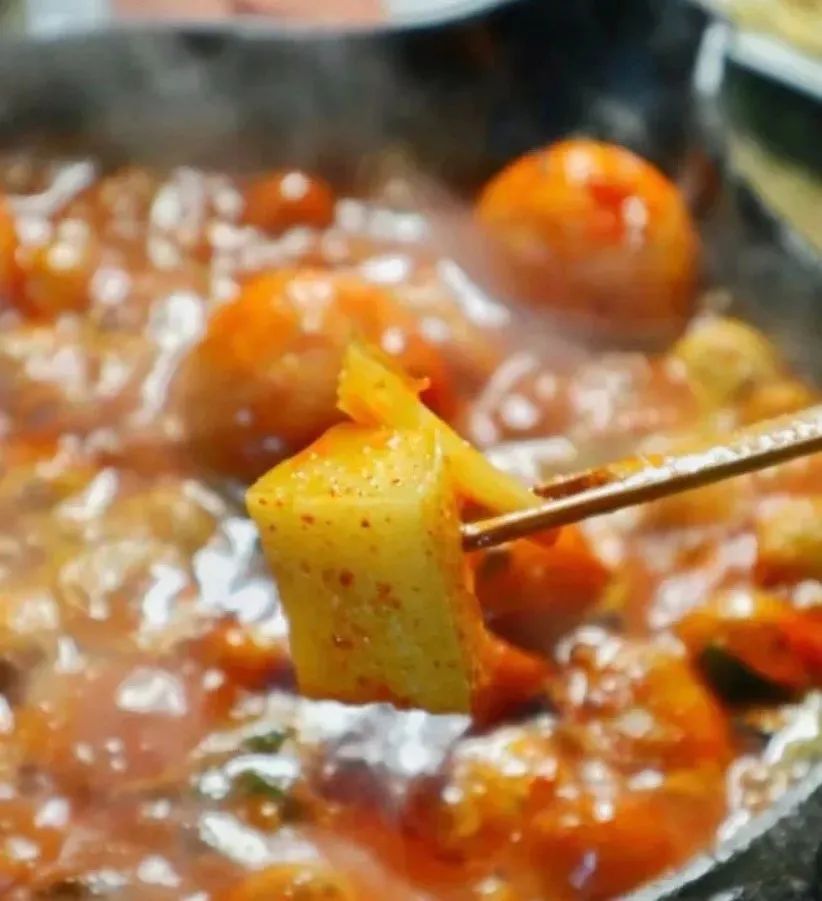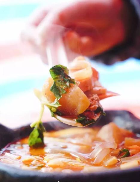 夺夺粉的味道很是奇妙,锅里的汤汁“咕嘟”着食材,渐渐煮得软透以后,食材也充分吸收了好味的汤汁,轻轻夹起一块,食材沾着浓郁的汤汁冒着腾腾热气,放入口中轻轻咀嚼,香辣透着微微酸味合着食材独特的味道立刻让人欲罢不能!