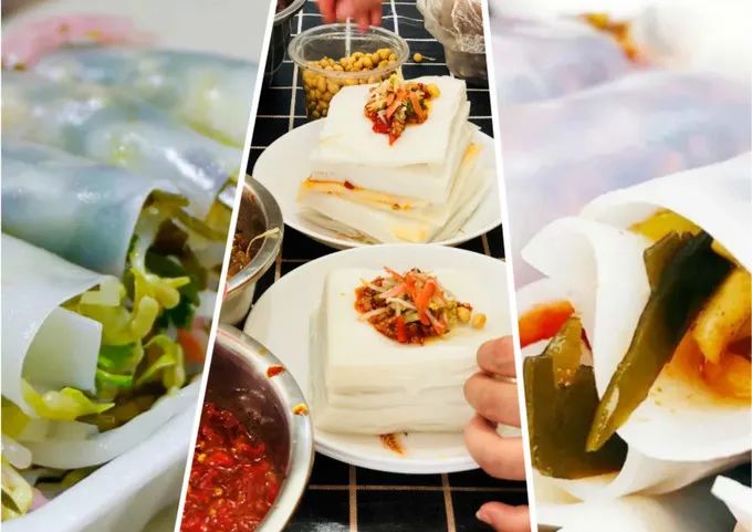 裹卷入口,先是粉皮爽口的凉,继而是馅,被裹起来的酸萝卜、绿豆芽、酥黄豆都是极为爽脆的食材,甜辣里还有一点酸,唇齿之间都觉得轻松爽快。