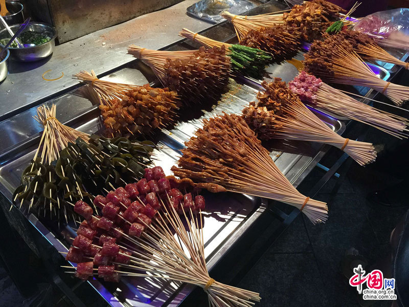 安顺到底哪些美食是不容错过的呢?上安顺好吃街找答案!卷粉、烙锅、乔凉粉、米凉粉、豌豆凉粉、烤肉串、臭豆腐、串串香、油炸耙、狗肉、黄闷鸭、螺丝、小锅凉粉、沙锅、酸汤鱼、米线、干锅鸡、土豆饼、香辣小龙虾……我已经数不过来了,您自己随便吃吧!