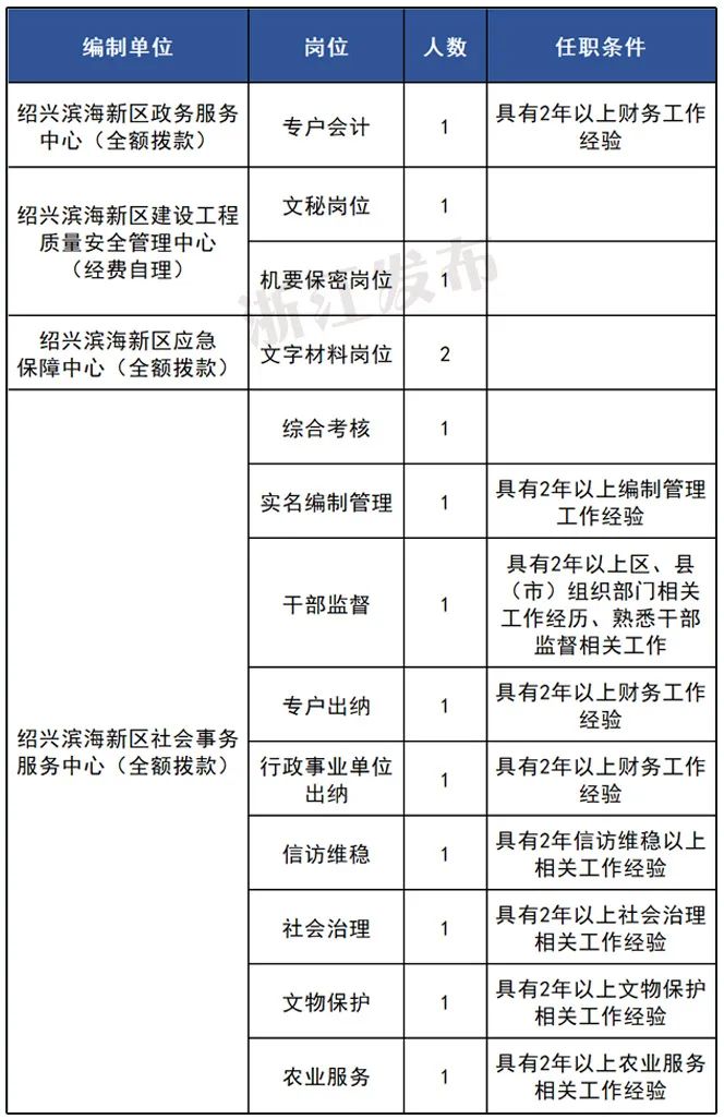 绍兴滨海新区管理委员会面向全市公开选调事业编制工作人员。