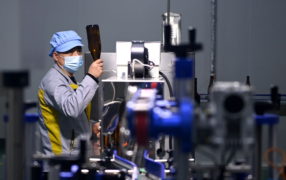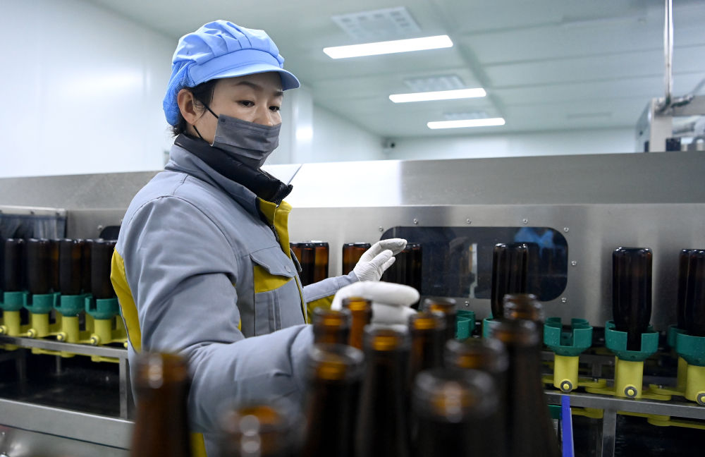 2月20日,在位于陕西省宝鸡市陇县苏陕工业园区的陕西花田陇上酿造科技有限公司,工作人员在制作米酒。新华社记者 刘潇 摄