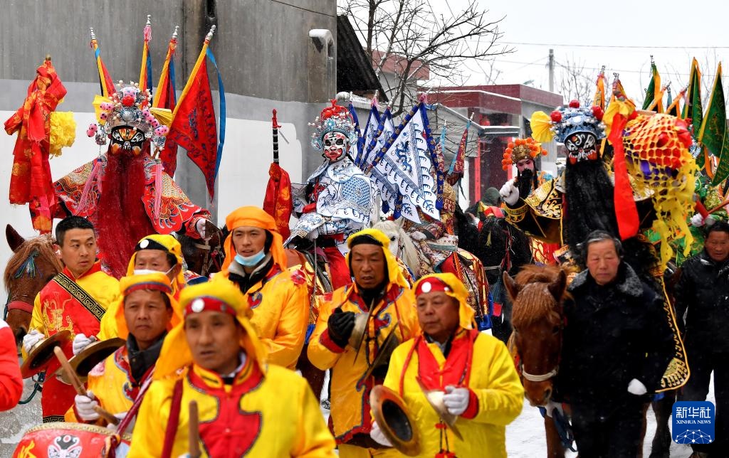 2月23日,陕西省宝鸡市陇县东南镇黄花峪村在进行马社火游演。