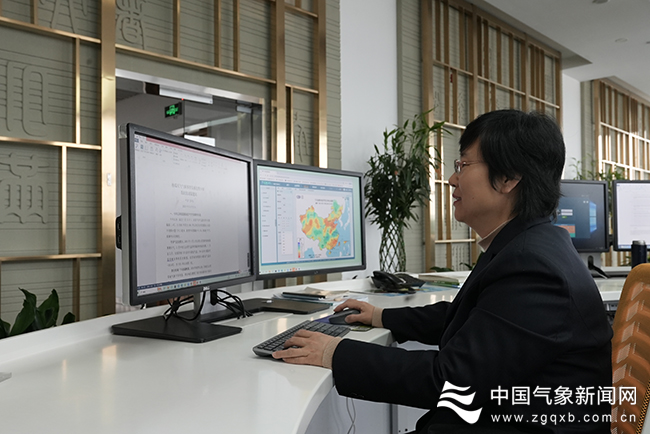 陈丽娟在分析预测气候形势。供图/陈丽娟