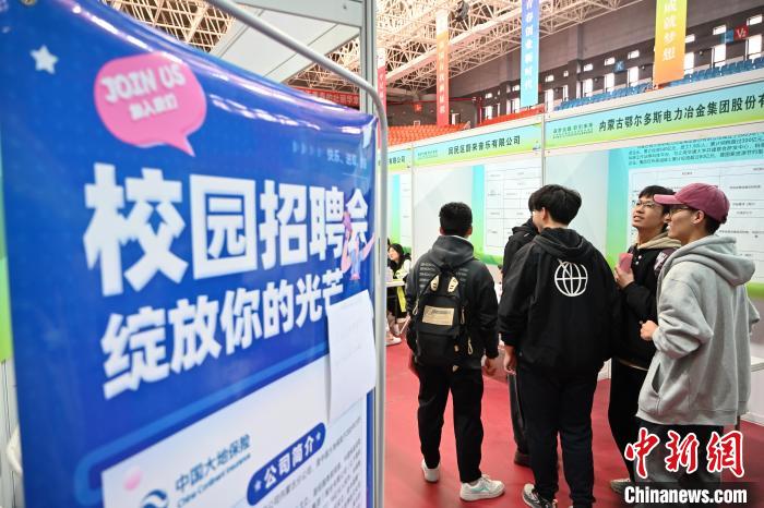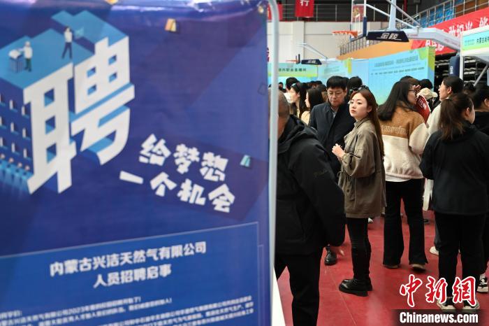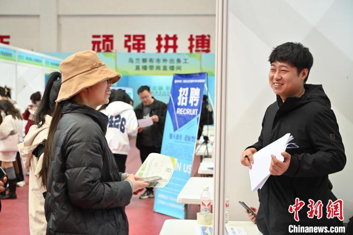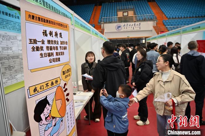 内蒙古呼和浩特市,求职者与用人单位交流。 中新网记者刘文华摄
