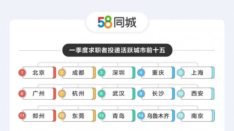 58同城数据:上海招聘薪资全国居首,佛山、哈尔滨招聘需求环比大涨