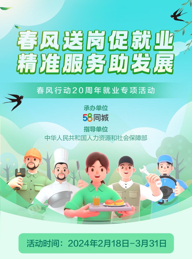 58同城积极响应人社部号召承办2024“春风行动”专项活动,海量好岗任选