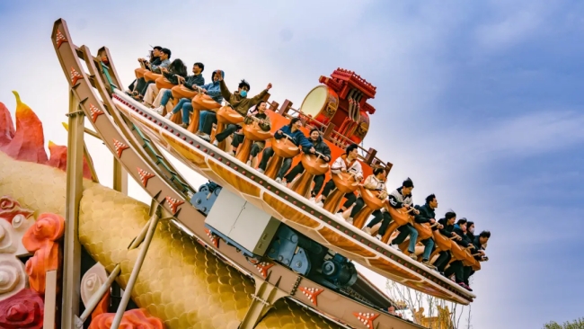 “龙腾鼓舞”游乐项目,增加了宋代击鼓元素,