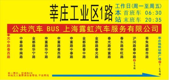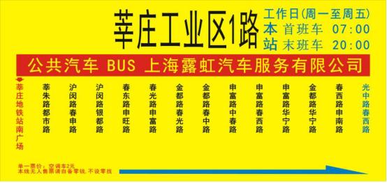 莘庄工业区1路仅工作日运行,双休、节假日停运。