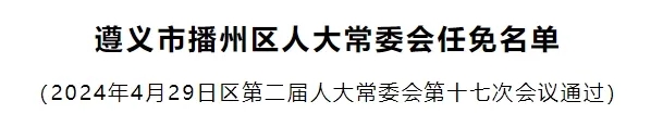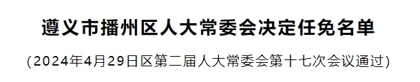 李自强原任遵义市播州区人大常委会农村经济工作委员会主任职务自然免除;