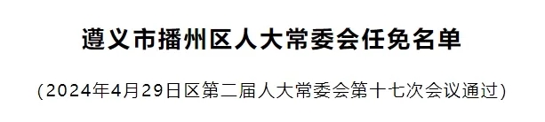 袁晓东原任遵义市播州区人大常委会监察和司法工作委员会主任职务自然免除;