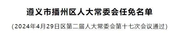 黄学坤原任遵义市播州区人大常委会财政经济工作委员会主任职务自然免除;