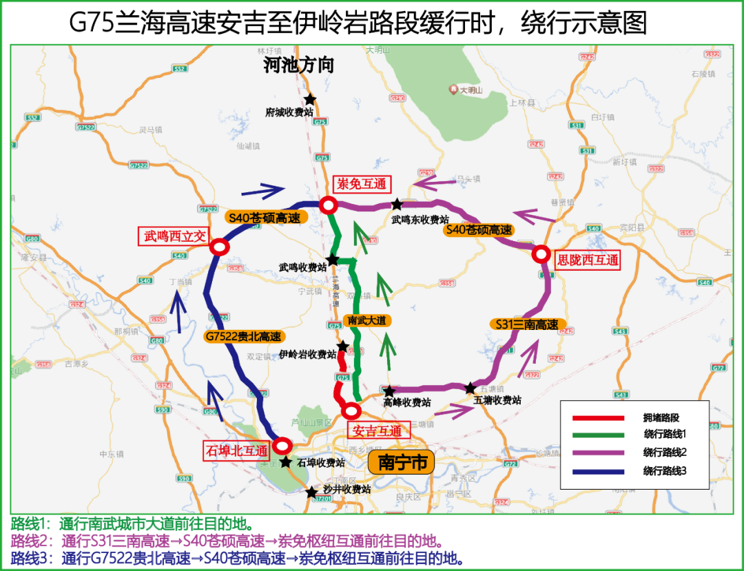 (南宁高速公路运营有限公司易拥堵路段绕行路图)