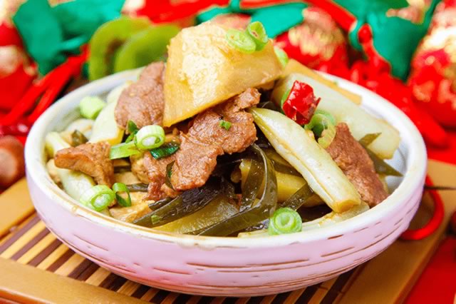 洛阳烩菜是河南省洛阳市的一道传统名菜,属于豫菜,其做法简单,是以丸子、扁垛、蘑菇、粉条、五花肉片等为原料,烩在一起制作而成的美味,具有多味混合、醇香不腻、咸鲜可口的特点,也成为洛阳一道老百姓家喻户晓的家常菜。相传南宋时期,民间百姓出于对奸相秦桧的愤恨,将所吃熬菜中的丸子当作是秦桧的头,油炸豆腐是秦桧的肉,粉条是秦桧的肠子。后来,因为这道菜是将各种杂七杂八的菜烩在一起做成的,所以人们就将它叫作杂烩菜。洛阳人遇到逢年过节或是家中来客,总爱做一大锅杂烩菜来招待客人,成为洛阳经典宴席菜。 【 详细>>】
