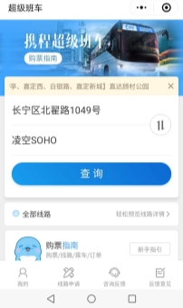 3、在超级班车小程序上输入出发地和目的地进行查询购票。
