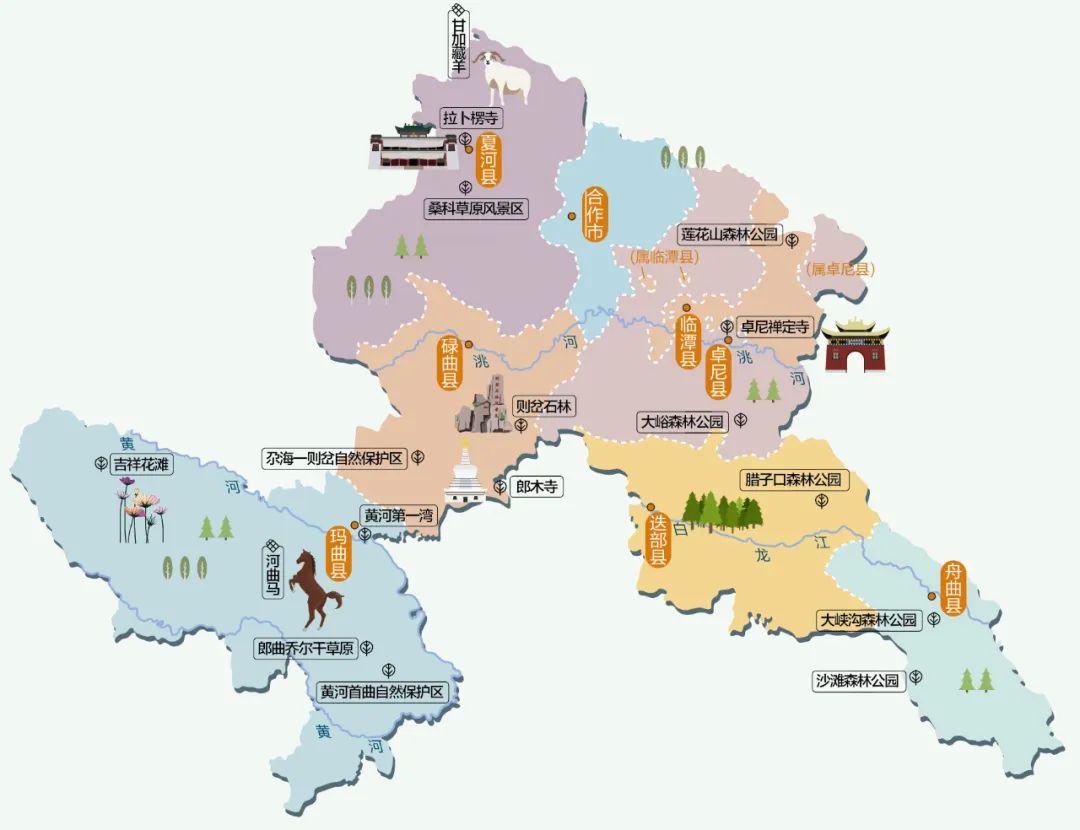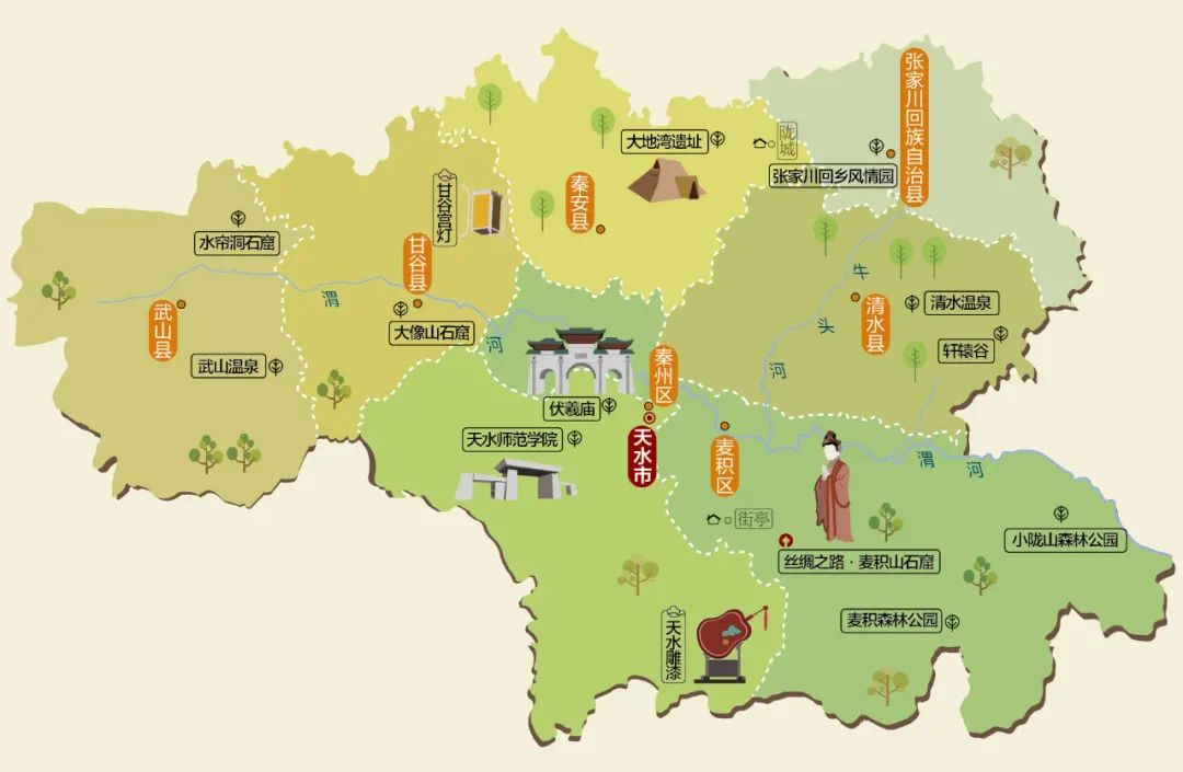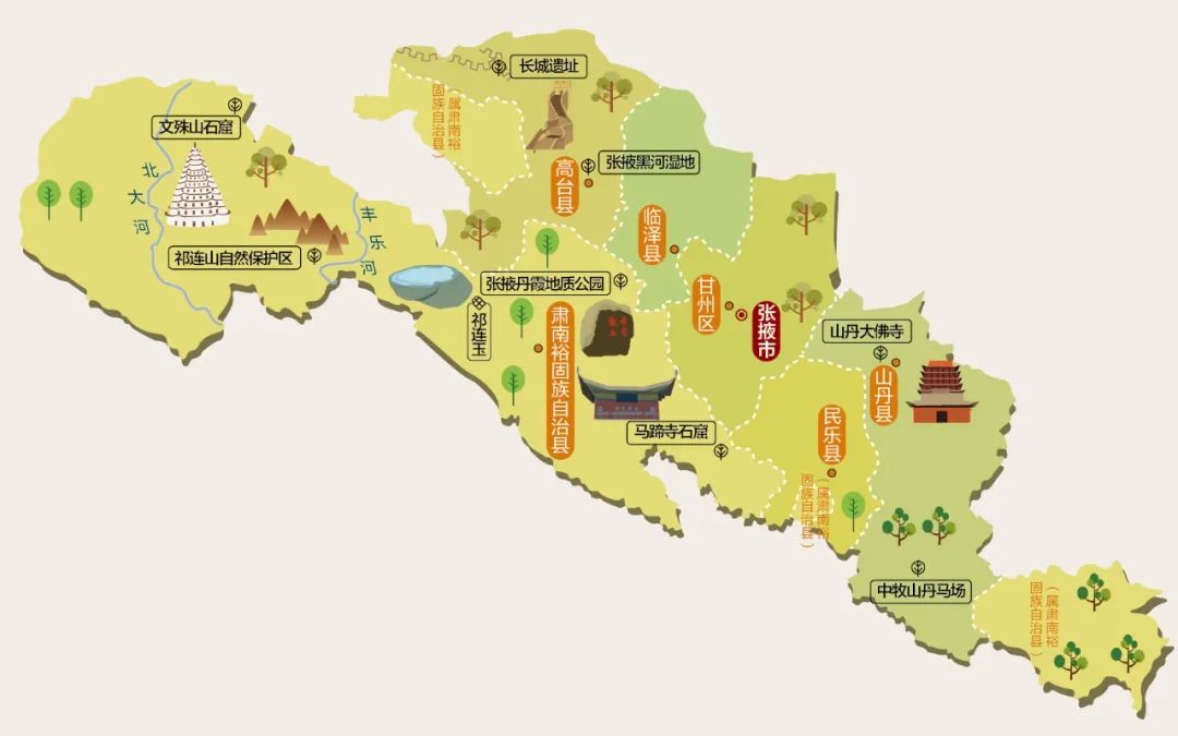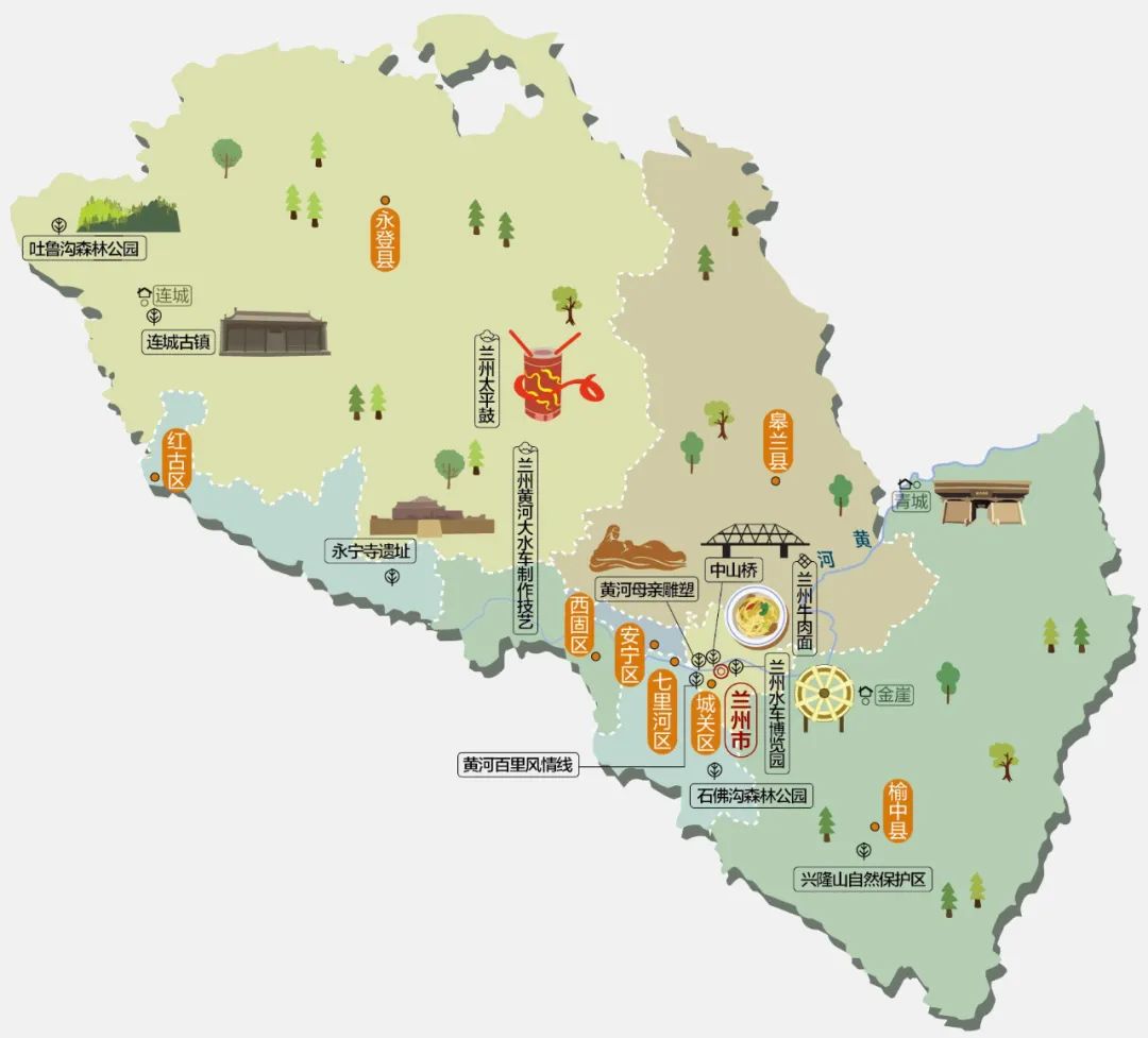 笔者整理了甘肃省和12个地级市2个自治州人文地图,方便大家了解其秀美壮丽山川和丰富多彩人文。