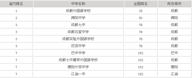 在最新2020年中国高中排行榜中,成都石室中学排名第78名,在四川省高中排名中,成都石室中学排名第三名,具体排名请参考下图: