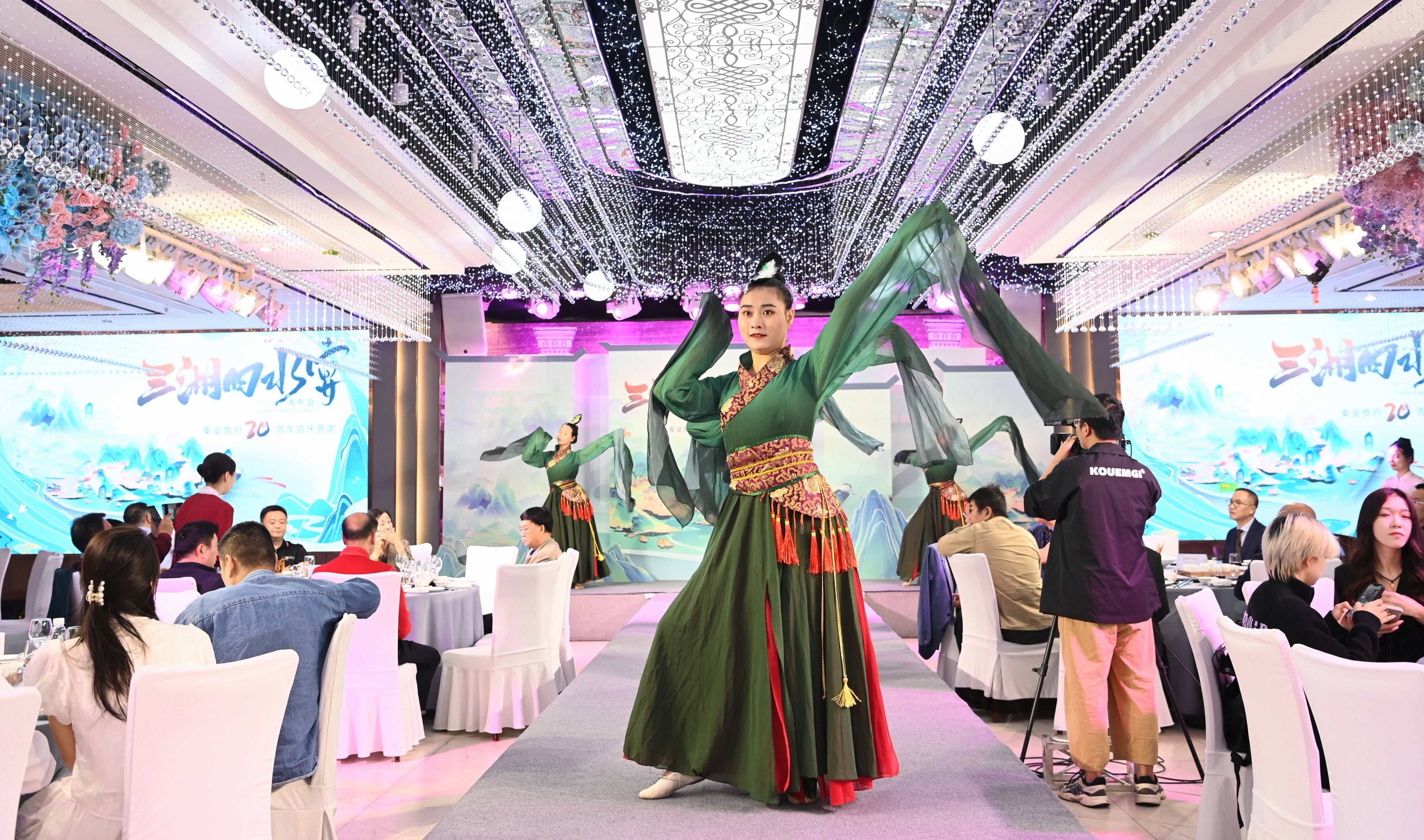 观一方景色,听一幕湘音,品一缕湘辣。开场舞蹈《三湘四水》,以及柳宗元、杜甫等穿越时空来到现场,营造出沉浸式的湖湘历史文化场景……近日,秦皇食府举办“三湘四水宴”宴会品牌发布会。活动现场精心打造的主题布景与精美菜品,将湖湘传统的锦绣山河与秦楚文化风尚完美结合,令人眼前一亮。