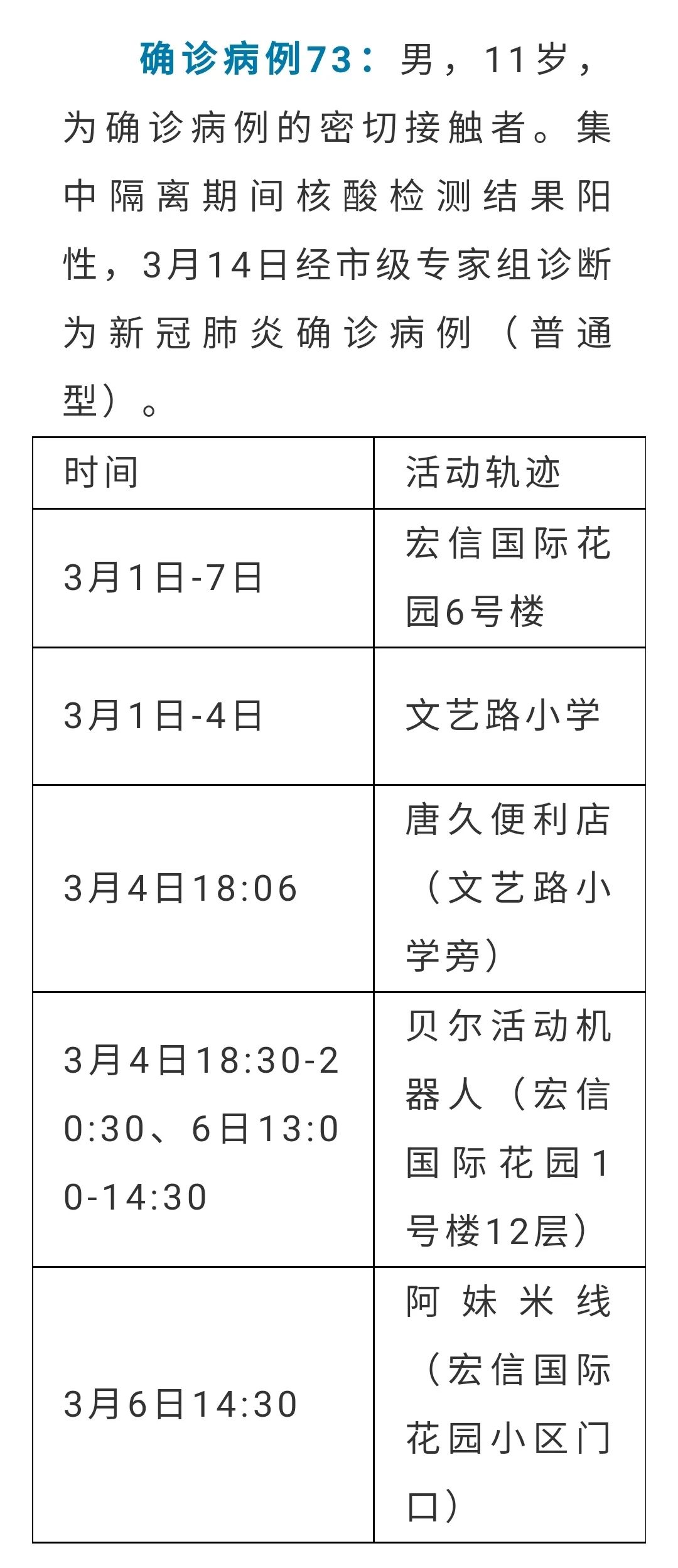 3月14日,宝鸡市新增40例新冠肺炎确诊病例。自3月7日以来,本轮疫情全市累计报告本土确诊病例149例,目前在院149例。根据宝鸡市应对疫情工作指挥部流调组初步流行病学调查,现将主要活动轨迹公布如下(未公布时间段尚未发现有公共场所活动轨迹):