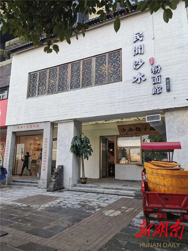 在老长沙人的口中,流传着太多关于白沙古井的美丽传说。“民间沙水粉面馆”临靠白沙古井,坚持汤底以筒子骨、龙骨和整只老母鸡以文火熬足10小时后,再加入过滤后的白沙井水与食材进行二次熬制而成,“以汤熬汤”来保证汤汁鲜浓不腻,入口回甘,多吃不腻,堪称一绝,目前已经创办了白沙路店、黄土岭店、朝阳店、五里牌共4家店。曾荣获“湖湘十大特色美食”等奖项,被CCTV、湖南卫视等美食栏目推介。