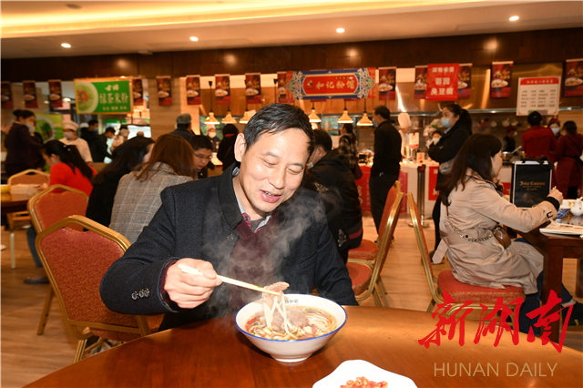 ▲热闹火爆的米粉大赛现场 食客云集的湖南米粉大赛现场长沙展台