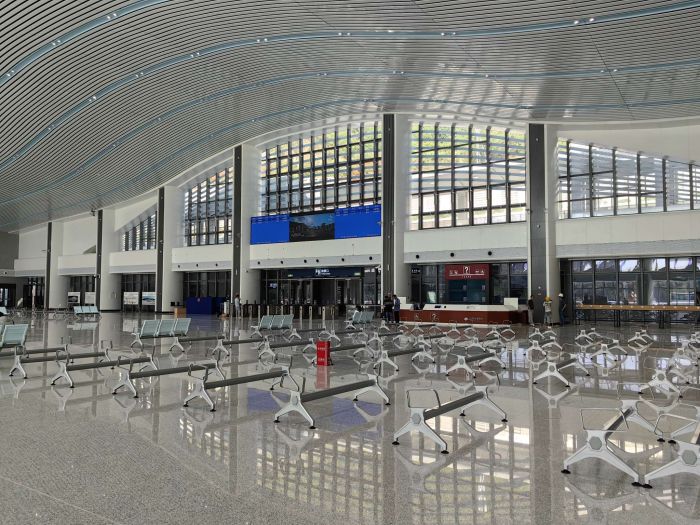 仪陇站候车大厅即将安装完毕的座椅