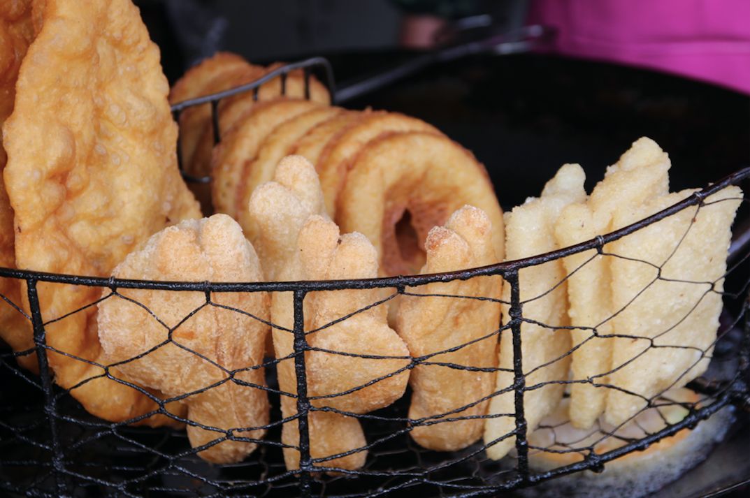 还有附近的特色油饼,吃一口就是满足。如果吃起来油腻,配上隔壁家的桂花糊米酒,清甜爽口,正是初夏的味道。