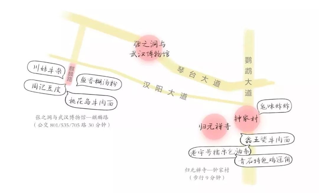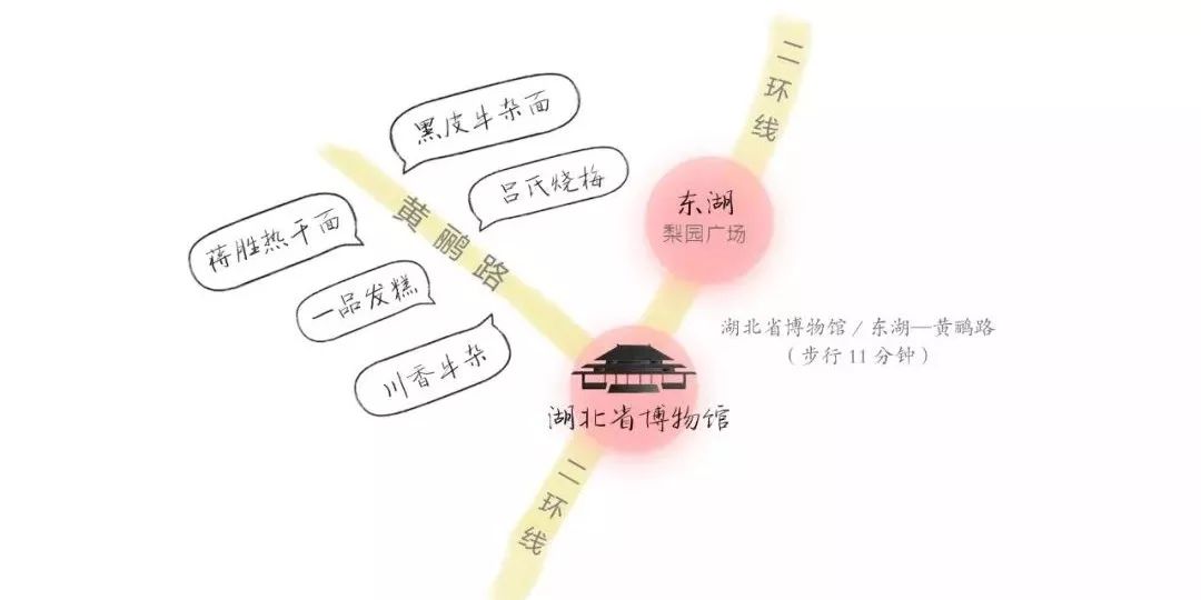 小编建议从张之洞博物馆回来,可以直接乘坐公交前往麒麟路饱餐一顿,街上的川妹牛杂、周记豆皮、鱼香糊汤粉、桃花岛牛肉面,都值得把你的肚皮撑爆。