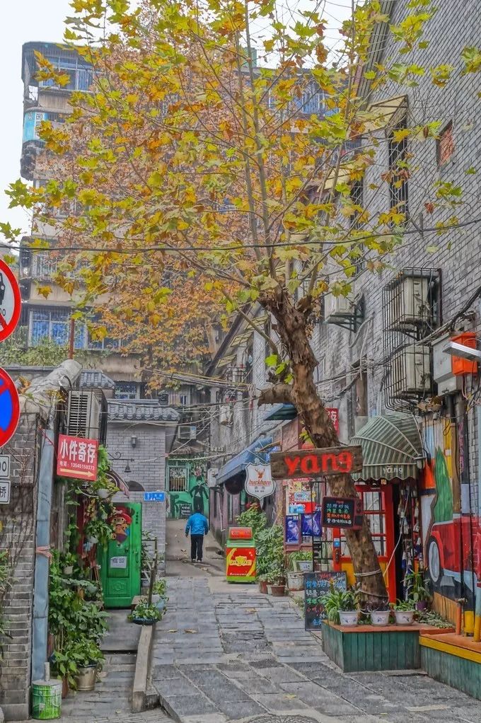 迈进这条有故事的巷弄,低矮精致的小楼,藏身秋叶深处的咖啡店,随意安放的金属椅,相依踱步的年轻男女......这些重叠成文艺、小资、慢生活的纹理。