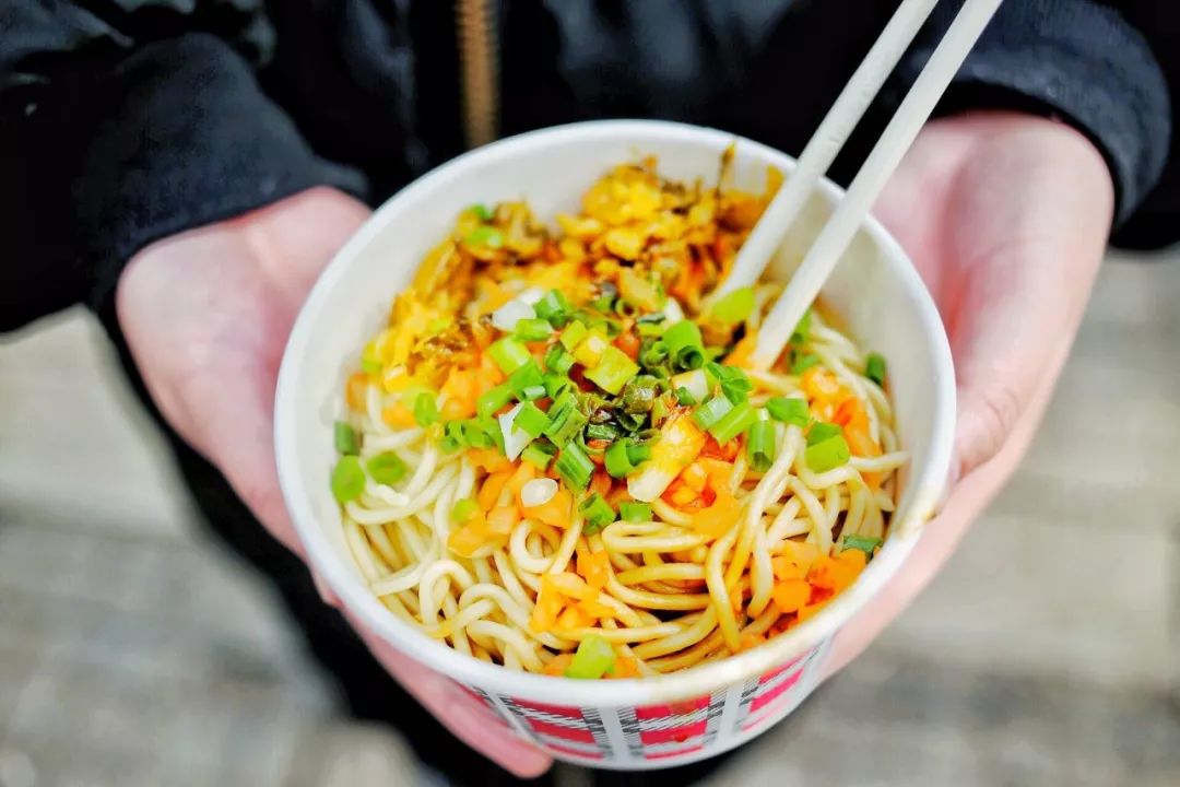路边打包一份汉味美食,一边吃一边逛,好不悠哉。