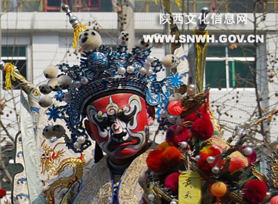 陕西宝鸡地区,人们习称西府,是陕西社火脸谱艺术具有代表性的地区之一。特别是陇县和宝鸡县的社火脸谱,流传历史久远,脸谱造型奇特,色彩质朴明快,纹饰严格讲究,谱样 多而齐全,代表了西府社火脸谱的最高水准。