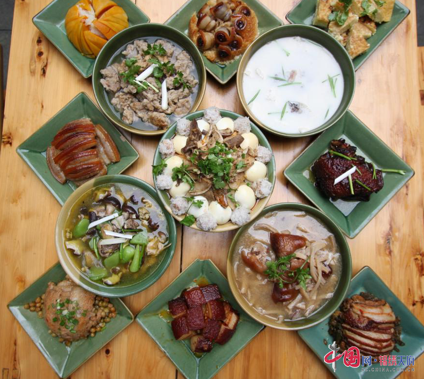 美景可以养眼,美食足以动心。勤劳淳朴的客家儿女做得一手好菜——琳琅满目的客家菜。入口即化的“坨子肉”、荤素搭配的大品碗……“九大碗”客家流水席让人大快朵颐;仪陇黄酒香气浓郁、质地甘醇,享有“液体蛋糕”的美誉;仪陇酱瓜、胭脂萝卜、哈哥兔肉、客家牛肉……各种风味小吃,足以让你的味蕾里尽情释放。