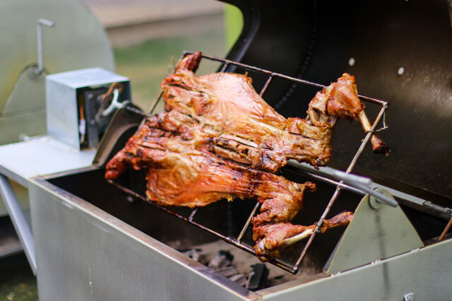 烤全羊是一道色香味俱全的北方美食,广泛流传于宁夏、甘肃、内蒙古等地区。烤全羊是我国北方游牧民族用以招待尊贵的客人或举行重大庆典时的盛宴特制的珍馐佳肴,又称整羊席,以前只供蒙古贵族享用,是上层人士在逢年过节、庆祝寿辰、喜事来临时常烤全羊用以招待尊贵的客人的珍馐佳肴,一般牧民根本吃不到的烤全羊。烤全羊一般选用草原上膘肥绵羊宰杀后,去毛带皮腹内加葱、姜、椒、盐等佐料整体烤制成。烤全羊的特点是羊形完整,外焦里嫩,皮脆肉滑,色泽金黄,吃起来肥而不腻,酥脆香美。内蒙烤全羊还被中国烹饪协会评选为“中国菜”之“...内蒙古十大经典名菜”。 【 详细>>】