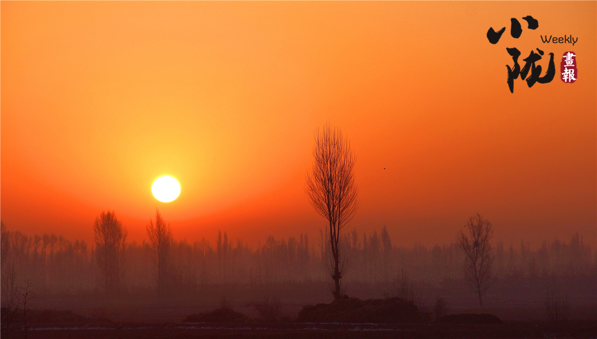 清晨,太阳从龙首山冉冉升起,映红了枣乡的天空。远处,树木葱郁,疏影朦胧,飞鸟在天空中执着地翱翔,打破了冬日乡村清晨的宁静。