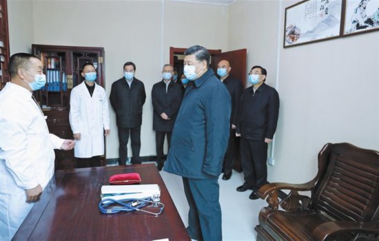 4月20日至23日,中共中央总书记、国家主席、中央军委主席习近平在陕西考察。这是4月21日,习近平在安康市平利县老县镇卫生院,了解基层卫生防疫、医疗保障工作。 新华社记者 鞠鹏摄
