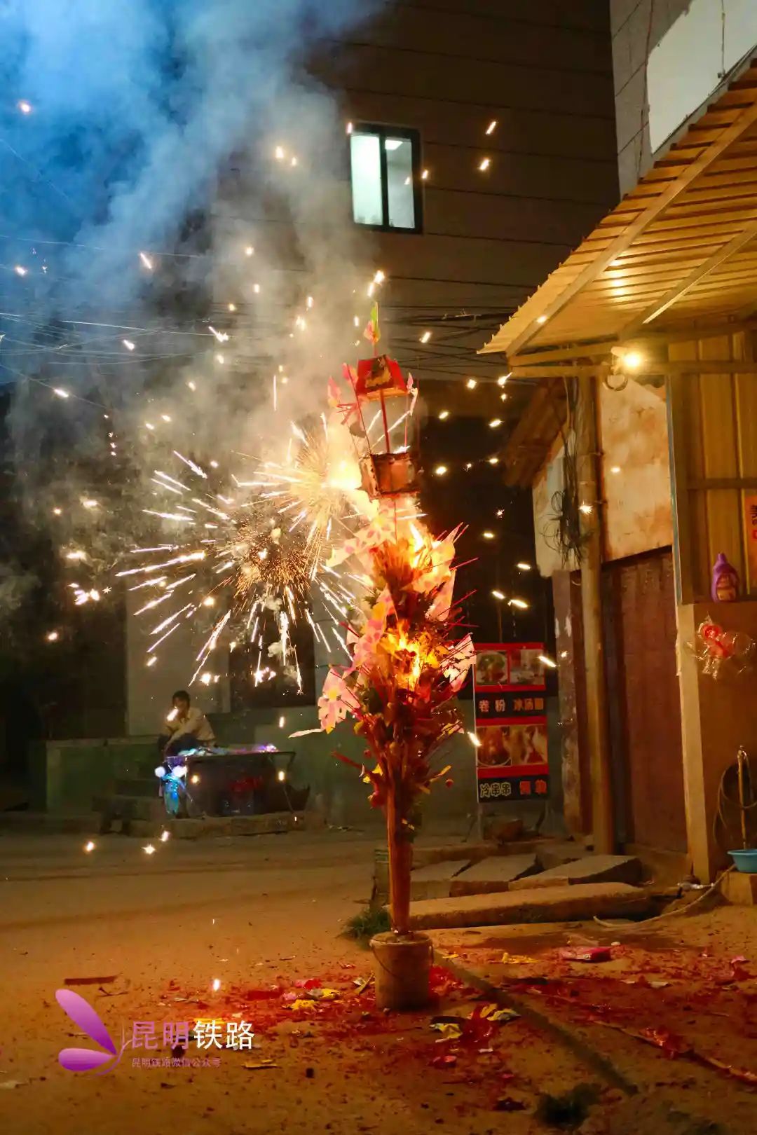 熊熊燃烧的火把与古街交相辉映