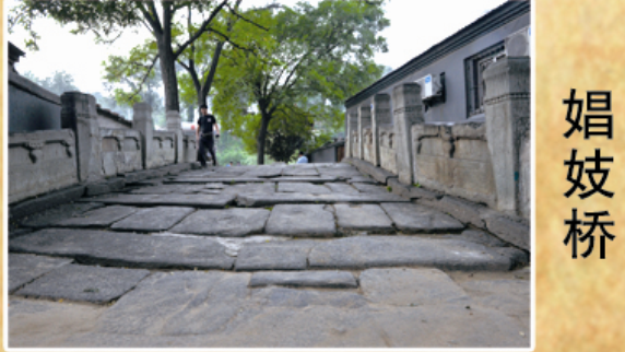 娼妓桥在苛罗坨村西,广慧寺东侧。明代时,全国妓女在戒台寺旁的秋坡村举办“妓女大会”,共同去戒台寺进香。古香道从这里向南行去戒台寺要过一道水沟,为了能早日脱离苦海,来世远离娼门,妓女们捐资在沟上修了一座石桥,意思是将此桥作为自己的替身,让千人踩,让万人踏,以赎自己的罪过,故名“娼妓桥”。娼妓桥为三拱石桥,桥基、涵洞券石、桥栏均为青石材质,石桥总长20.72米,桥基总宽5.3米,桥宽4.1米。民国六年(1917年),一场山洪把这座古桥卷走了一半。现保留下来的桥身长11米,由于河床南移,尚存的两个涵洞也已淤塞。如今只能观赏到顶券以上的部分了。