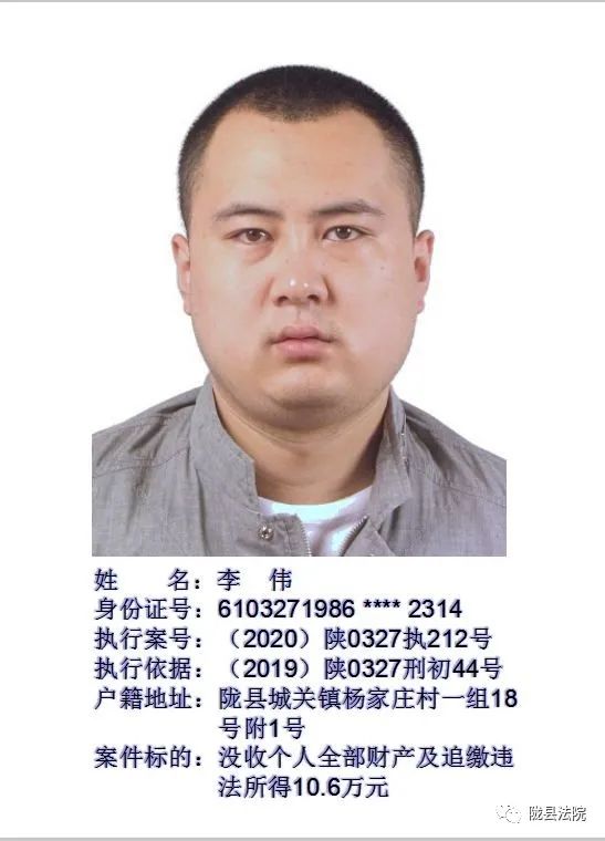 原标题:《陕西省陇县人民法院执行悬赏公告》