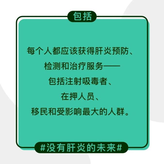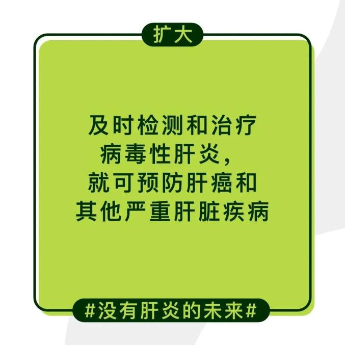 肝炎能够被检测和治疗,一些类型的肝炎可以通过接种疫苗预防。如果所有人共同努力,一个没有肝炎的未来是可以实现的。