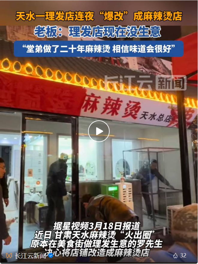 采访中记者发现,为抓住商机,有天水理发店店主紧急“换赛道”,将理发店原地改为麻辣烫店;也有商家“无心插柳”,去年在天水刚学的麻辣烫炒料技术,今年3月便在异地新店开业,迎来生意“开门红”。