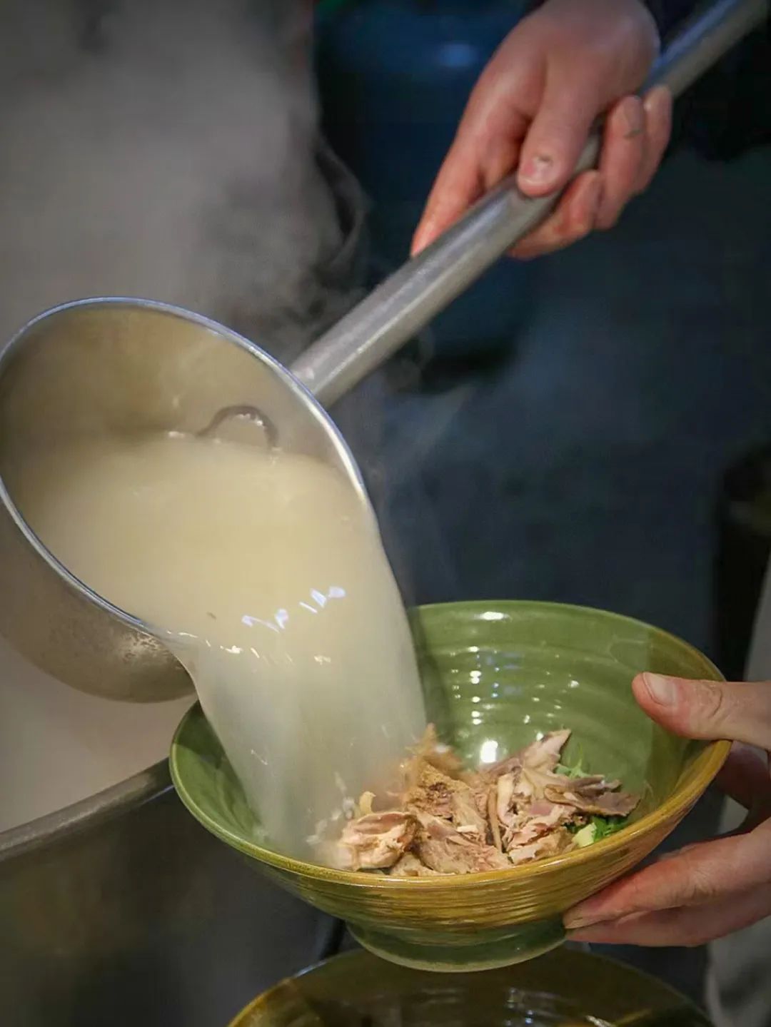 烩面的美,需要后天习得:原汤煮面,素、荤、饭、菜、汤一起搭配,面讲究个劲道,汤头要鲜美,要用羊肉、羊骨加入中药材小火慢熬,才能把那点香味全都吊出来;最后是配菜要多:羊肉,鹌鹑蛋,豆腐丝,黄花菜一股脑扔进去,跟着白花花的扯面慢煮,出锅的一瞬间香气四溢,汤鲜、肉嫩,面条在嘴里能蹦出声来。舀上一勺老板自己炸的辣椒,那叫一个香。