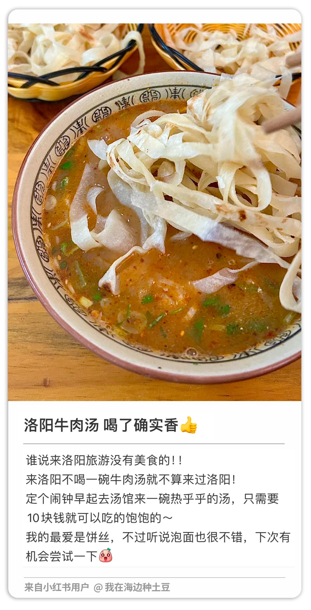 这才是真的大问题:牛肉汤再好喝,连着喝两顿也不太妥;烩面烩菜,也算汤汤水水一类,不好意思接着当午饭招待;洛阳特色浆面条,很多本地年轻人都吃不惯;至于胡辣汤配烧饼,干脆直接被朋友拒绝了。