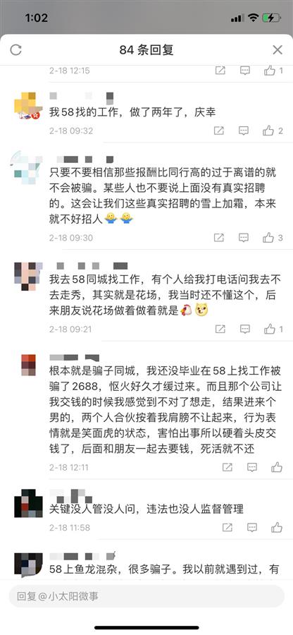 目前,李林鹏已经在医院接受救治,但招聘网站58同城受到大量网友指责。在该条新闻下方,许多网友反映自己曾在58同城求职遭遇骗局。