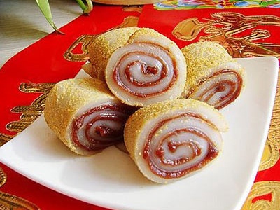 据说有一次,慈禧太后吃烦了宫里的食物,想尝点儿新鲜玩意儿。于是啊,御膳大厨左思右想,决定用江米粉裹着红豆沙做一道新菜。新菜刚一做好,便有一个叫小驴儿的太监来到了御膳厨房,谁知这小驴儿一个不小心,把刚刚做好的新菜碰到了装着黄豆面的盆里,这可急坏了御膳大厨,但此时再重新做又来不及,没办法,大厨只好硬着头皮将这道菜呈到慈禧太后的面前。慈禧太后一吃这新玩意儿觉得味道还不错,就问大厨:“这东西叫什么呀?”大厨想了想,都是那个叫小驴儿的太监闯的祸,于是就跟慈禧太后说:“这叫‘驴打滚’。”从此,就有了“驴打滚”这道小吃。