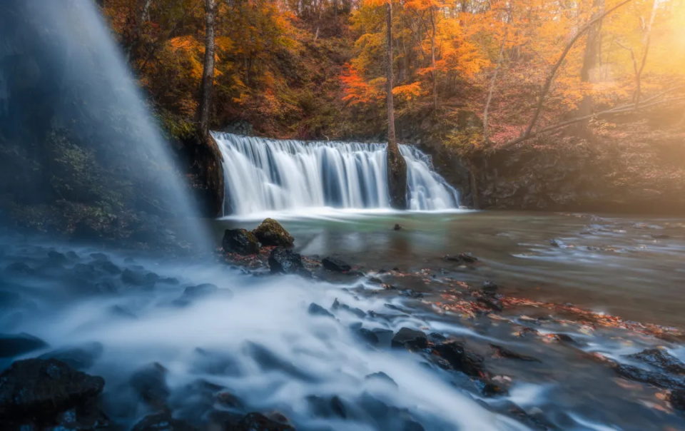 继续前行,抵达吊水壶瀑布,吊水壶瀑布景区以水奇谷幽著称,被誉为“东北的九寨沟”,秋日的瀑布分外妖娆,响水河上云雾缭绕,溪水潺潺,瀑布声如雷贯耳,震撼人心。