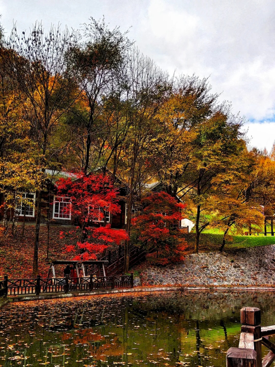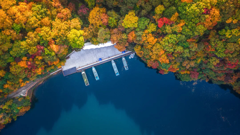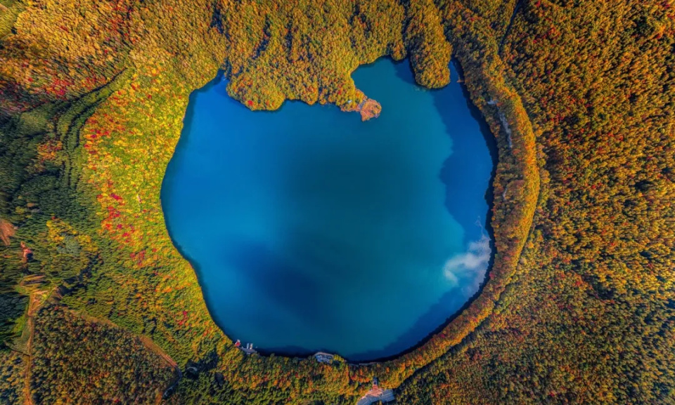 人间瑶池境,唯美大龙湾。湖岸边的山坡上,金黄的枫桦、火红的枫叶、浓绿的松树,缤纷的色彩在此交织,绘就一幅秋日盛景。