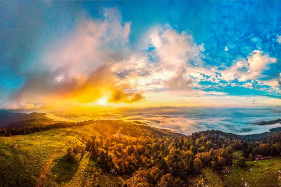 四方顶的秋天,满山红叶与云海、日出交相辉映,美不胜收。这里成了众多画家和摄影师的创作源泉,纷纷前来写生、打卡,留下秋天的足迹。