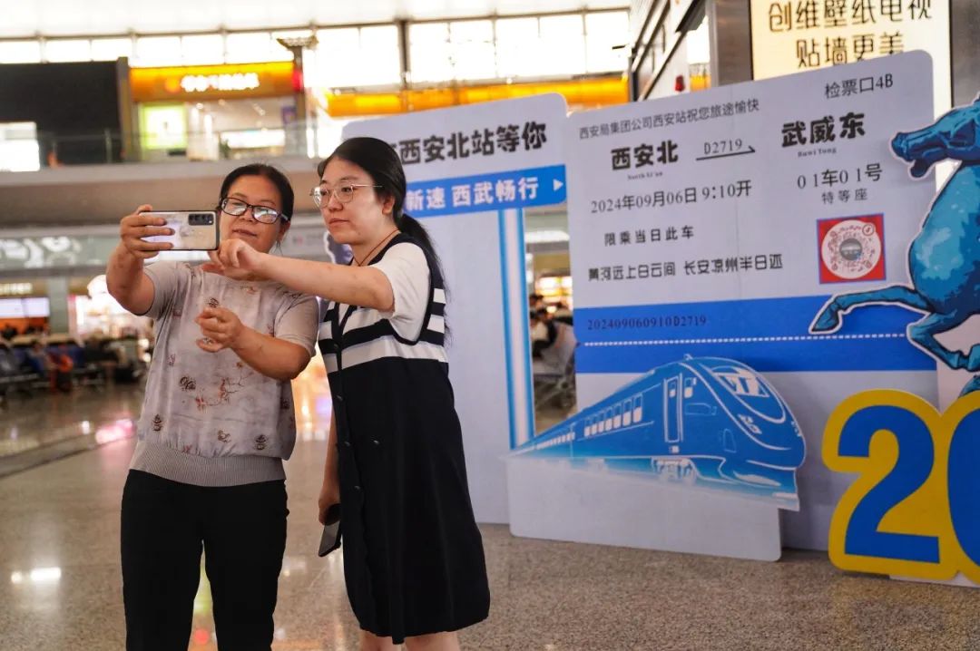 当日,西安北站还进行了D2719次列车首发打卡活动,工作人员制作了精美的手举牌,邀请旅客合影留念,定格美好瞬间。