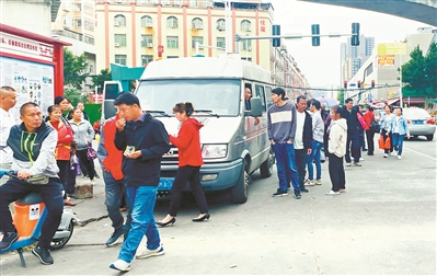 面包车、小轿车、电动三轮车……形形色色的交通工具,都是招聘者搭载日结工前往工厂的载具。招聘五人左右的工厂,一般都会开一辆面包车,在召集齐了当天的日结工后,一起将他们送到工厂;而招聘三人左右的工厂则会开着一辆小轿车,除了作为接送日结工的交通工具,这辆车也成为“彰显”工厂实力的“广告”。