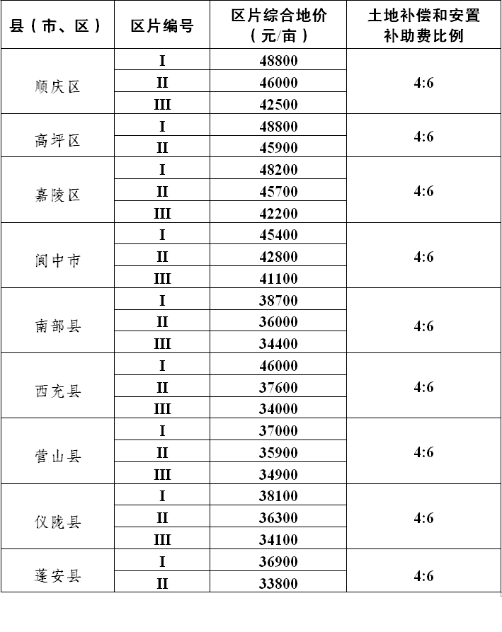 南充市征收农用地区片综合地价标准已经省政府批复同意,现予以公布,并就有关事项通知如下: