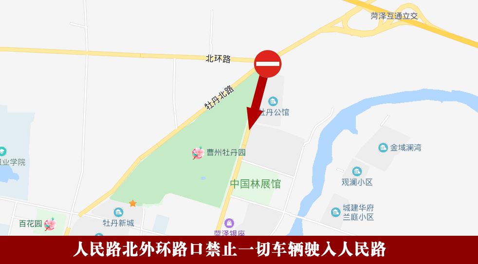 第28届菏泽国际牡丹文化旅游节开幕在即,为缓解旅游节期间的交通压力,最大限度地避免交通拥堵,为外地游客提供方便,确保旅游节顺利举办,结合菏泽市区道路交通实际,旅游节期间将对牡丹园附近部分路段实施交通管制。具体事项通告如下: